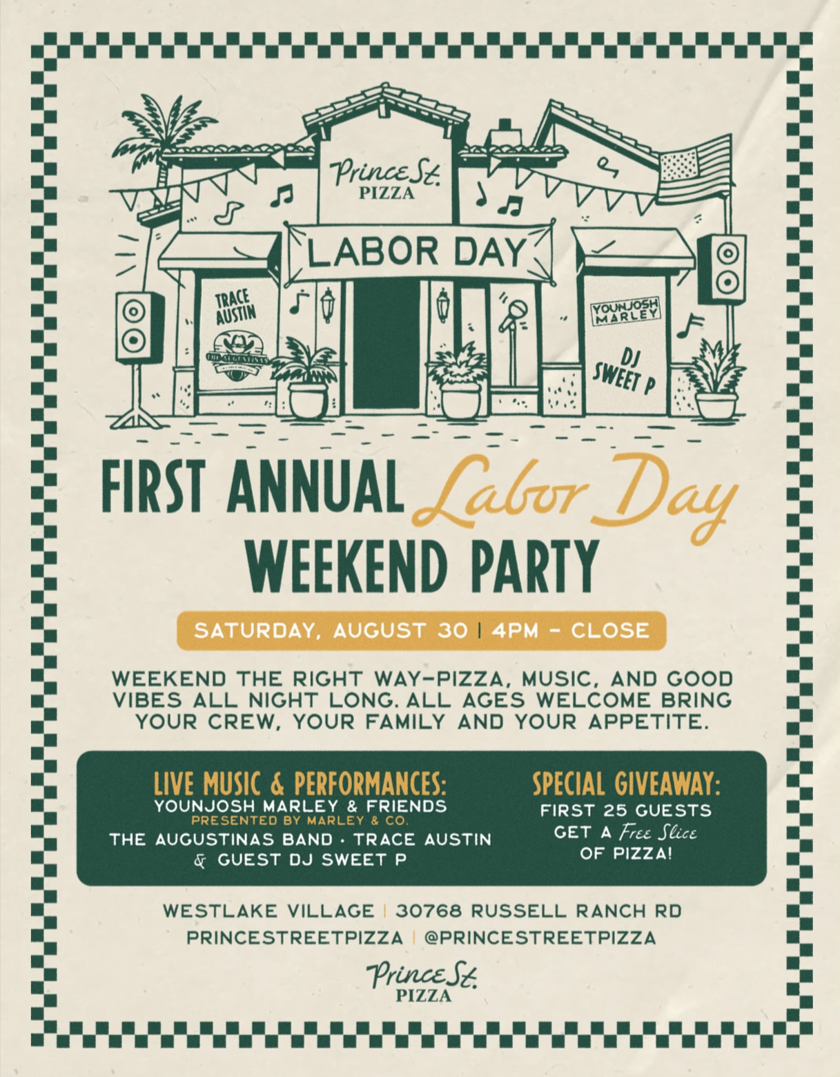 Get ready for the first annual Labor Day Weekend Party at Prince Street Pizza, featuring an impressive lineup of talented musicians, live music, and DJs, happening Saturday, August 30th from 4pm to close!